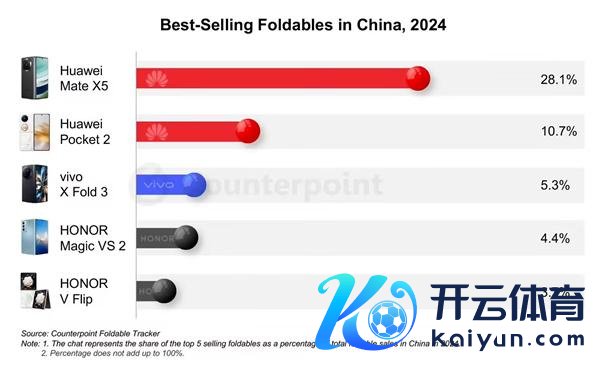 最畅销的五款可折叠智高手机占中国可折叠手机销量的50%以上,其中华为和各占两席,vivo占一席。